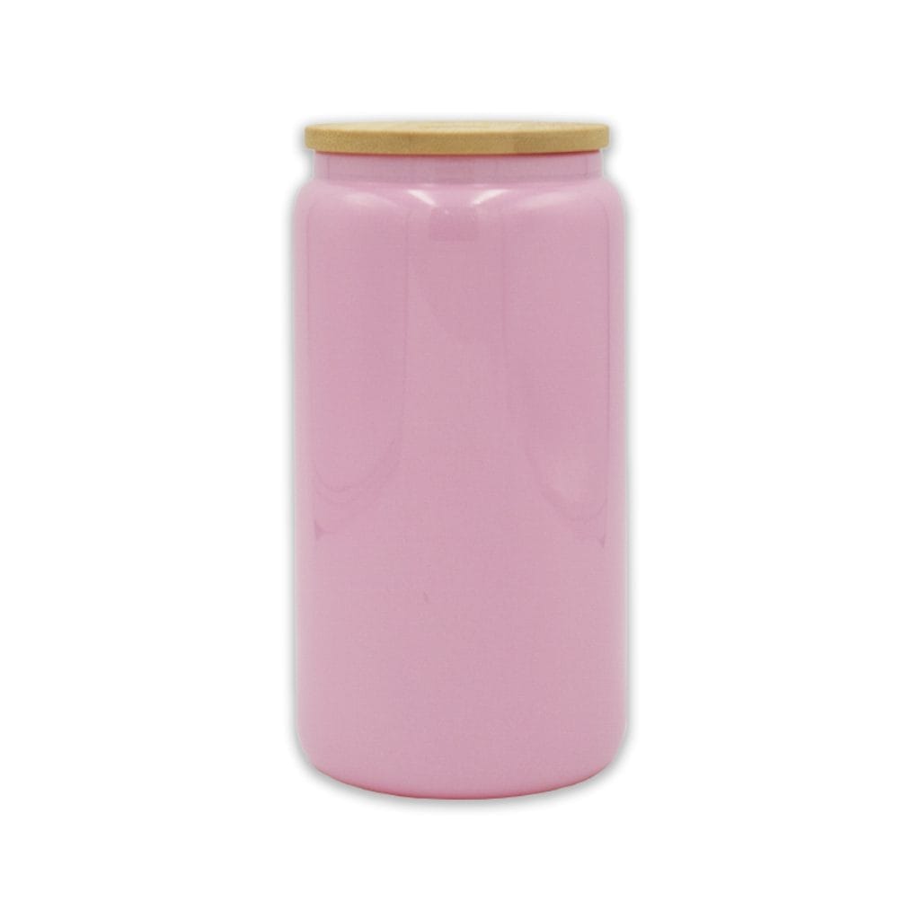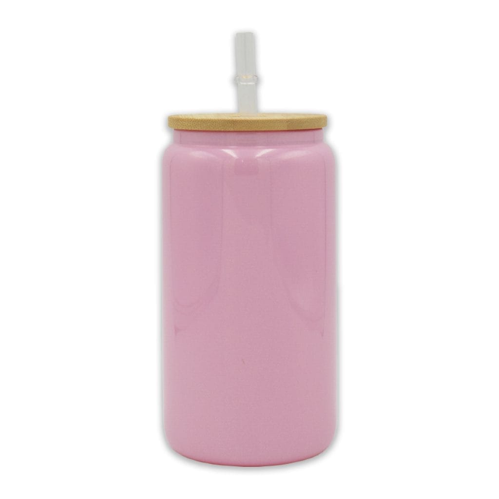 • 16oz Libby Can Pink Glitter with Bamboo Lid Glass (Substrate)