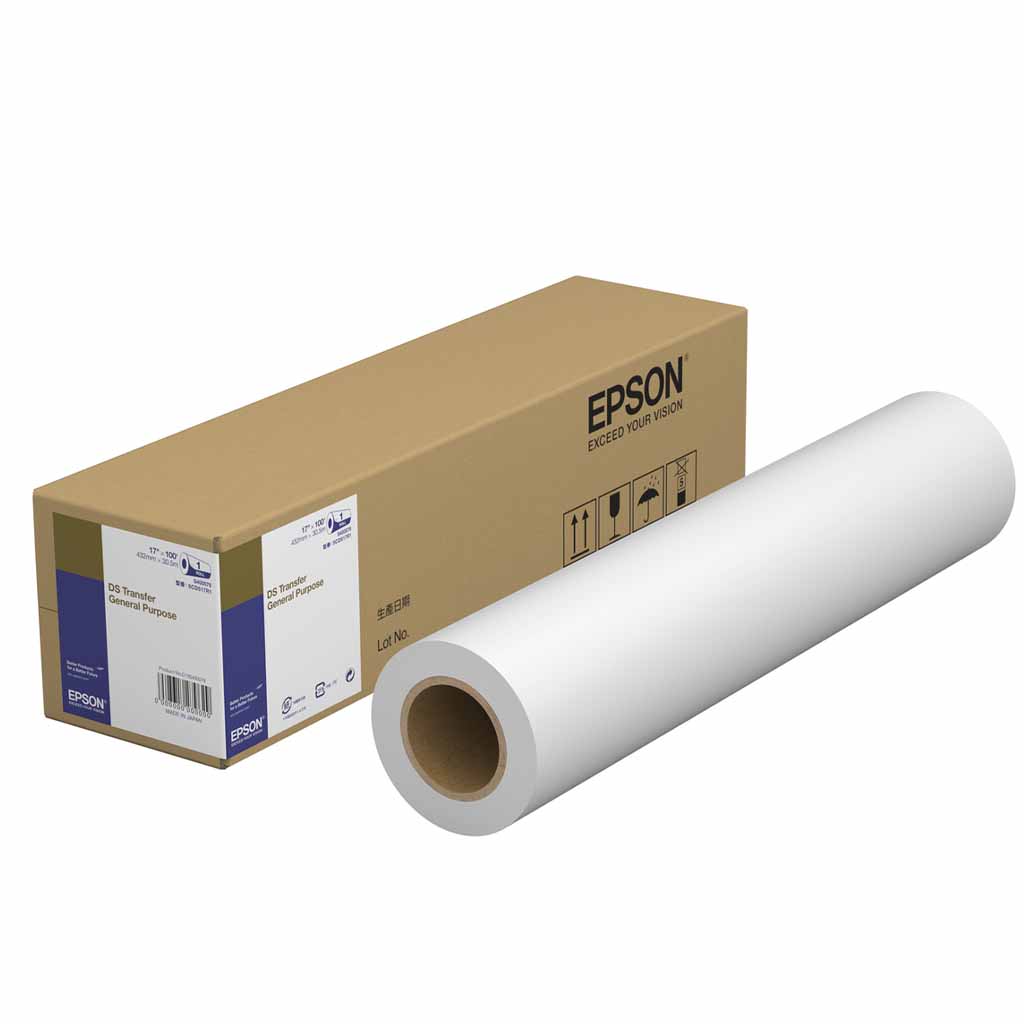 Epson General Purpose Dye Sublimation Paper, for use in any sublimation printer, required to be used by Epson genuine printers. Various sizes, rolls and cut sheet.